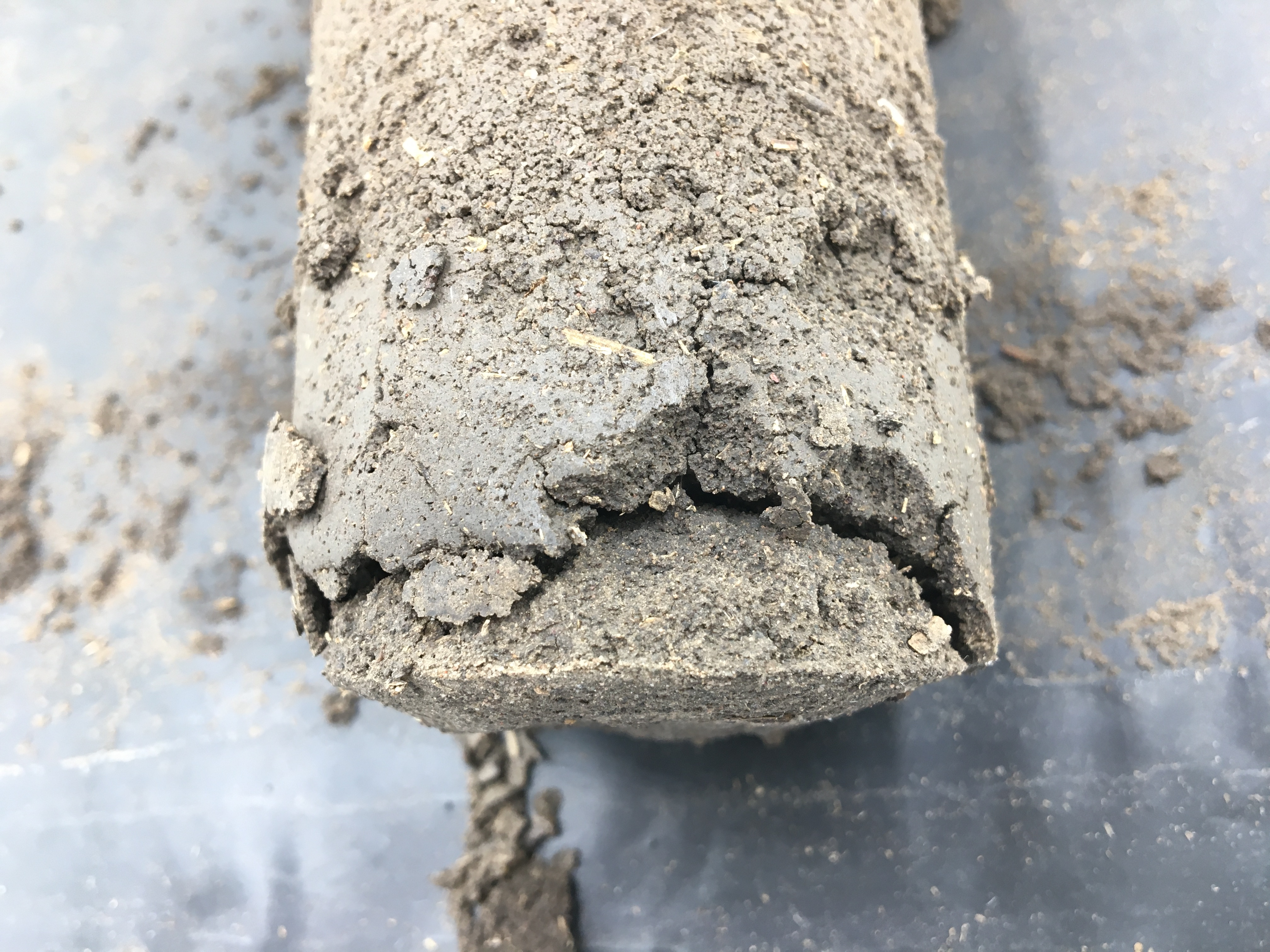 Crusting was confirmed in the untreated (control) column when soil columns were removed from PVC pipes following experimentation (Fig 4).